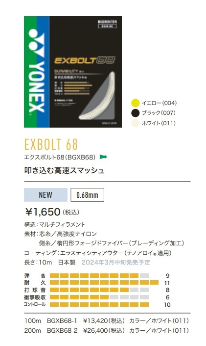 ヨネックス バドミントンガット エクスボルト68 フラッシュオレンジ/BGXB68 [BGXB68]