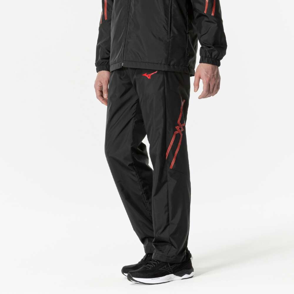 MIZUNO 【吸湿発熱】MCライン ブレスサーモ裏地ウォーマーパンツ ブラック×チャイニーズレッド Mサイズ/32MFB631