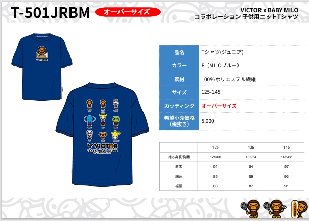 【メール便/配達日時指定不可】VICTOR BABY MILOコラボレーション子供用ニットTシャツ/T-501JRBM